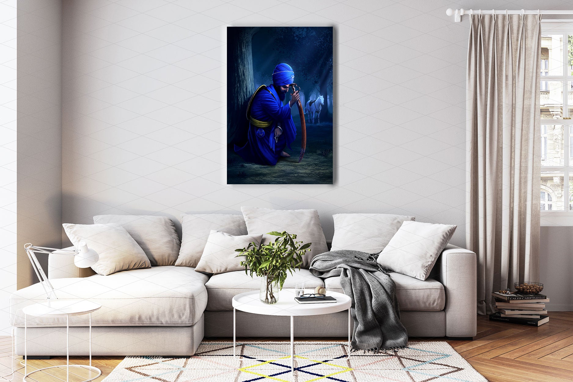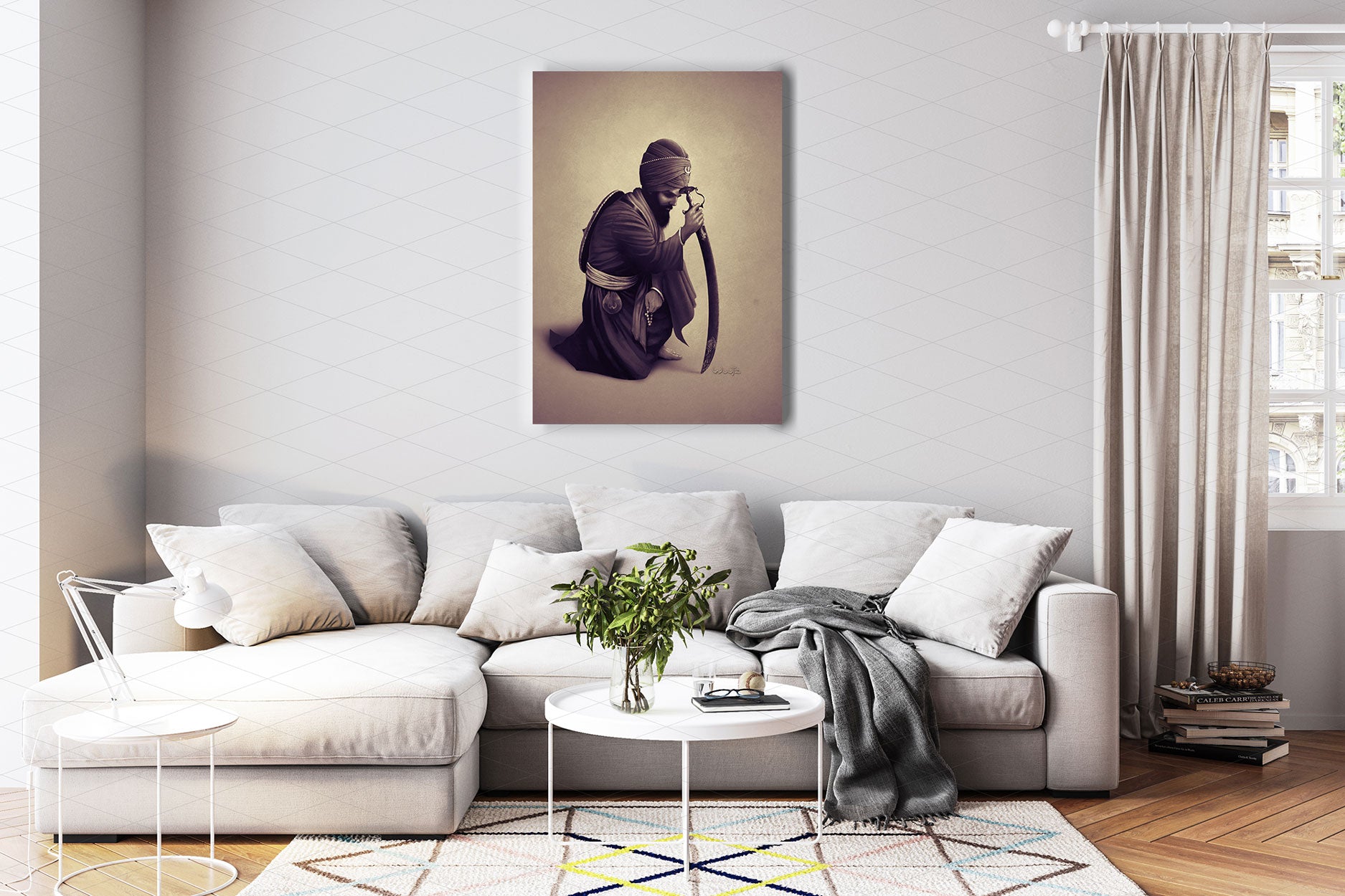 Beautiful canvas art inspired by Guru Gobind Singh Ji and their time in the Machiwara Jungle.